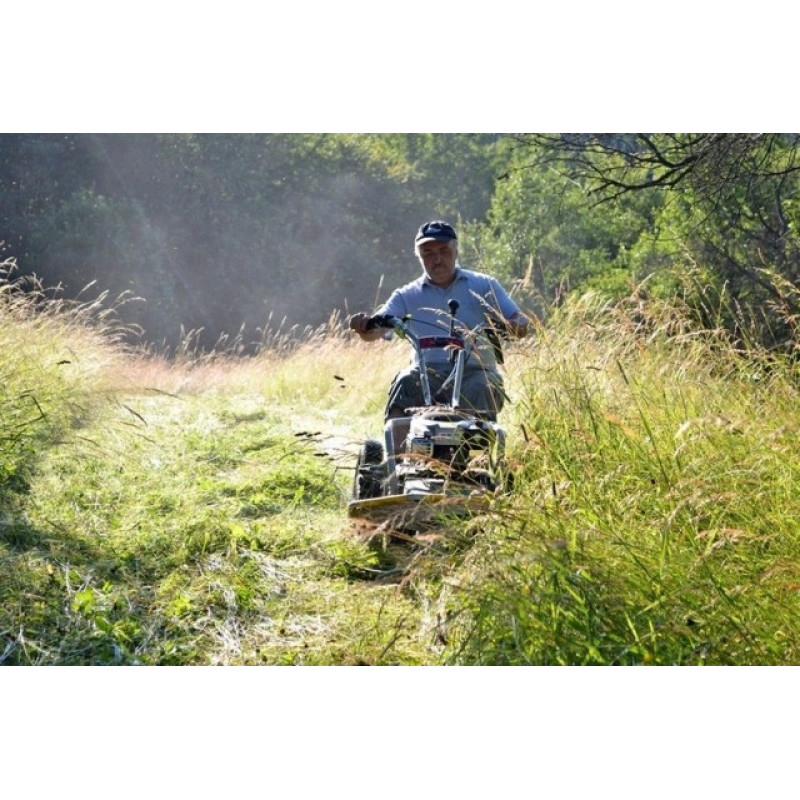 | Pļaušanas mehānisms: | 3 naži ar pagriežamu aizsargpriekškariņu un lodīšu gultni |