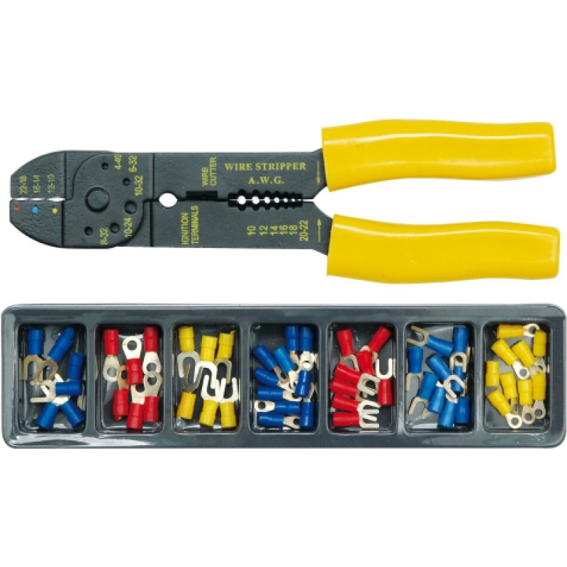 Stiepļu noņēmējs un presēšanas knaibles ar spaiļu savienotāju komplektu 100gab