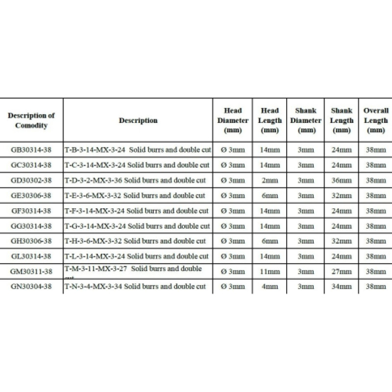 Carbide rotary burrs set Ø3x3mm 10pcs