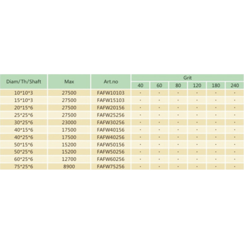 Alumīnija oksīda atloka disks ar vārpstu / 40x25x6mm Nr.40 Alumīnija oksīda atloka disks ar vārpstu / 40x25x6mm Nr.40 0.47€ FAFW4025640
