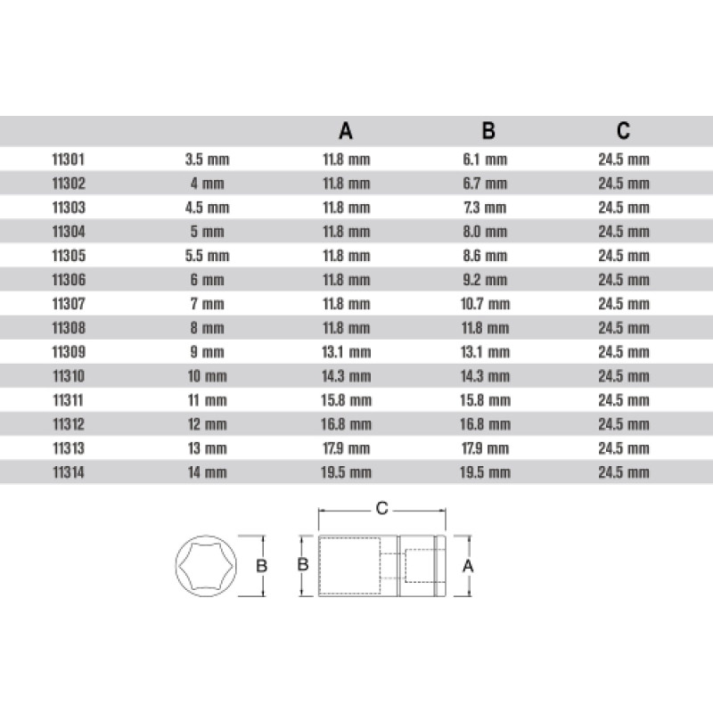 1/4 1/4" Dr. 6pt. Socket / 8mm 0.88€ S11308
