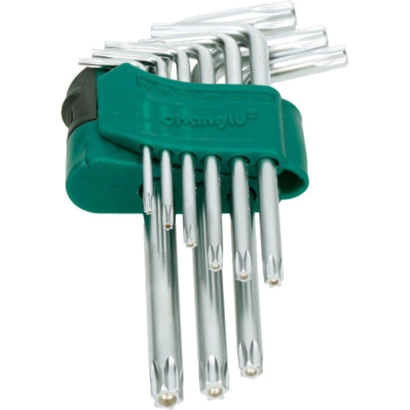 L veida sešstūra atslēga TORX īsais komplekts 9gab. (T10-T50) ar caurumu