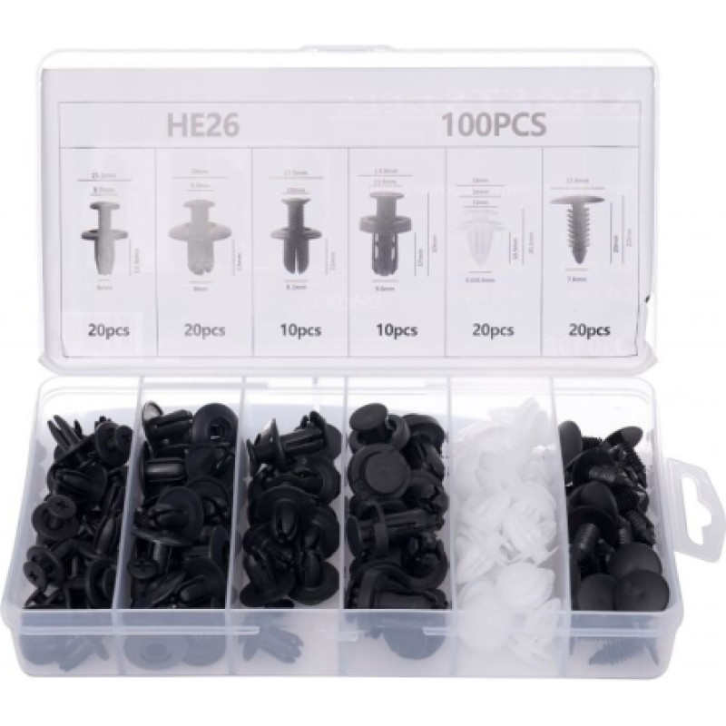 Plastmasas stumjamās saspraudes universāls sortiments (100gab.)