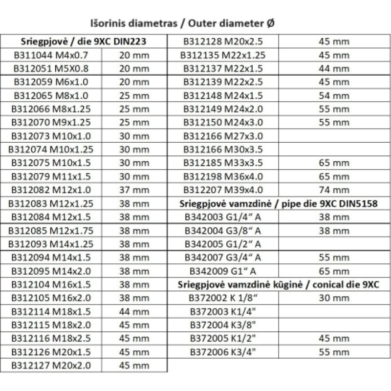 Mašīnas un rokas apaļo vītņu presformas 9XC DIN223 / M4x0.7
