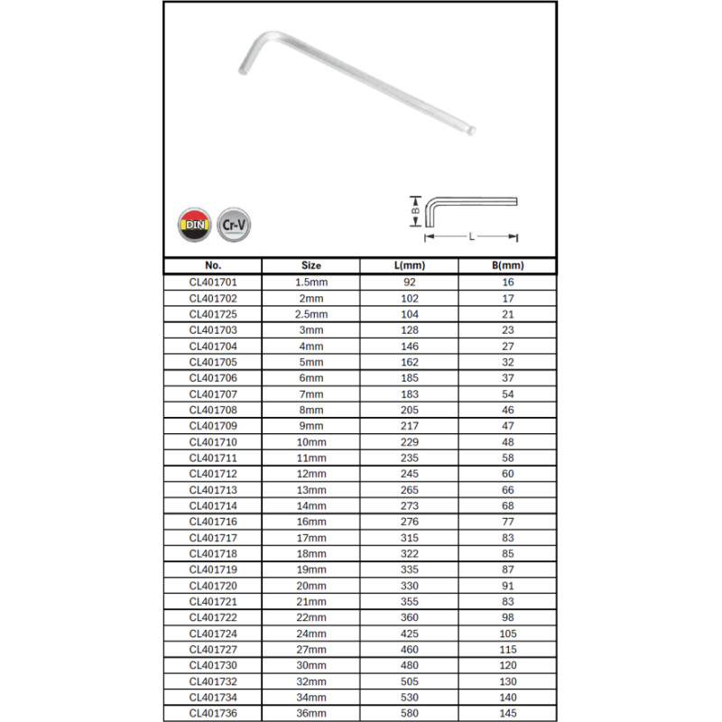 L-type hex key ball point / 14mm L-type hex key ball point / 14mm 4.36€ CL401714