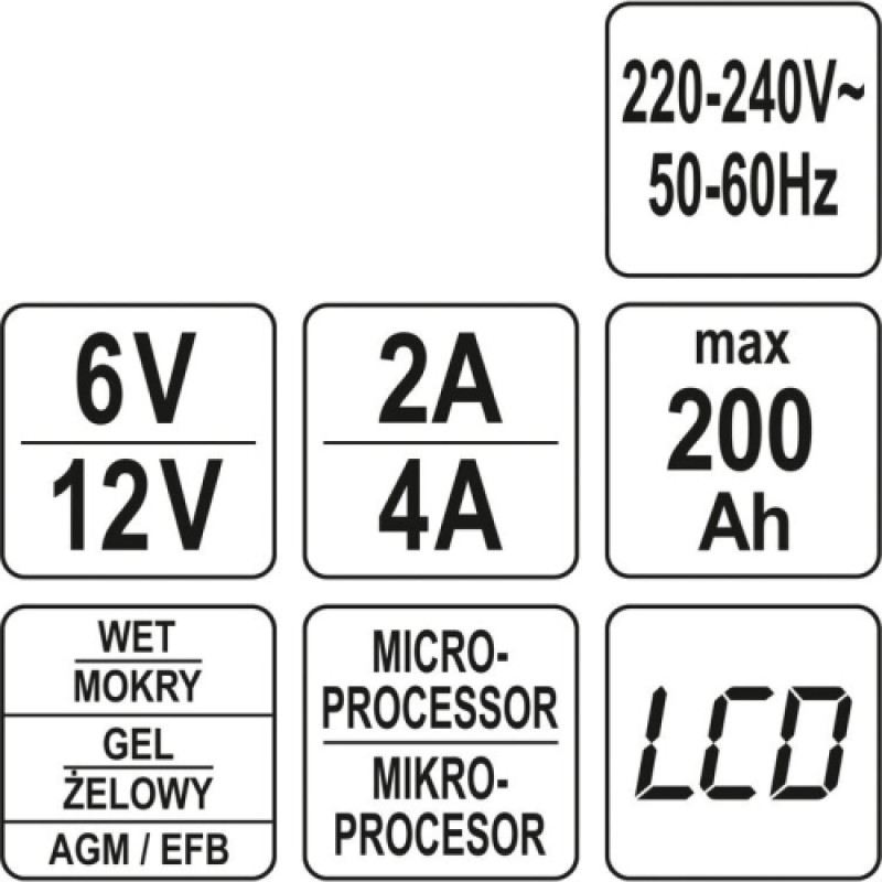 Elektroniskais akumulatoru lādētājs 6/12V 2/10A 200Ah Elektroniskais akumulatoru lādētājs 6/12V 2/10A 200Ah 46.46€ YT83002