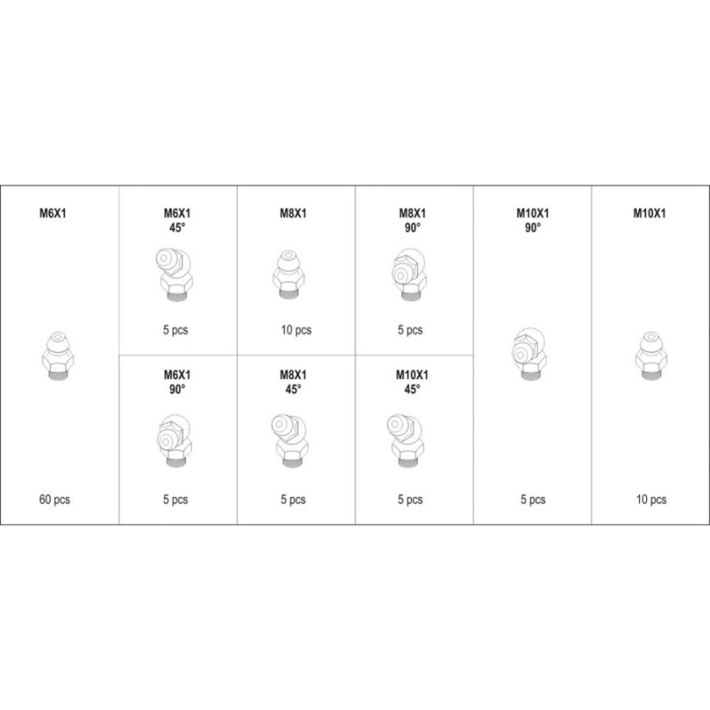 Grease nipples set 110pcs Grease nipples set 110pcs 6.10€ KR110G