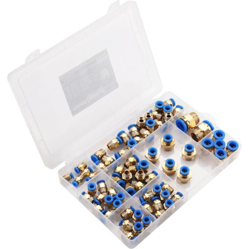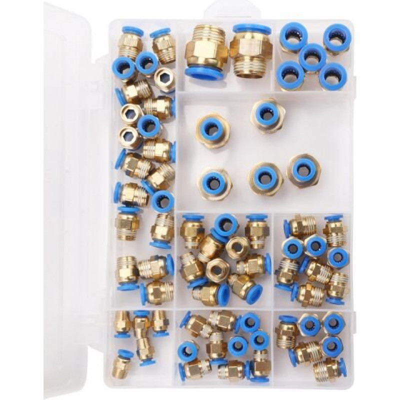 Set of threaded pneumatic quick connectors (4 - 16mm)(1/8"+1/4"+1/2") 72pcs