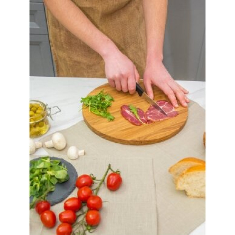 Jūsu iepirkumu grozs ir tukšs! | Lakoniskais dizains un dabisko materiālu skaistums padarīs DOMOZON par iecienītāko virtuves piederumu. Dēlis ir ideāli piemērots jebkuru trauku griešanai un pasniegšanai, tam ir ērts izmērs, tam ir augsta izturība un izturība, tas neuzsūc smakas un ir viegli tīrāms. Lielais koksnes blīvums novērš asmeņu puves. Izgatavota no ozola masīvkoka, tā ir mitrumizturīga, padarot to daudzpusīgu jebkuram pielietojumam. Ozola koksnei piemīt dabiskas antibakteriālas īpašības, novērš pūšanu un sēnīšu veidošanos. Produkts ir pārklāts ar pārtikas eļļu un ir pilnībā gatavs lietošanai uzreiz pēc iegādes. |