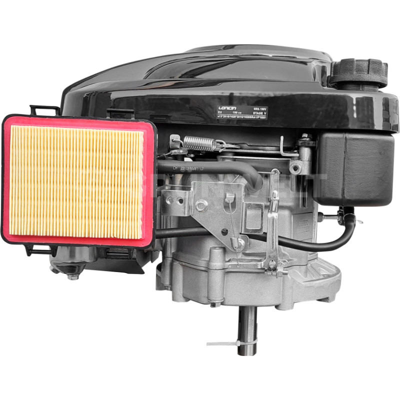 Jūsu iepirkumu grozs ir tukšs! | GTVN: 4260614711662 Tips: 4 taktu, viena cilindra, piespiedu gaisa dzesēšana, OHV Darba tilpums: 196 cm³ Urbums × Gājiens: 70 × 51 mm jauda: 4,8 kW / 6,5 ZS / 3600 apgr./min Nominālā jauda: 3,6 kW / 3600 apgr./min griezes moments: 12 N∙m Vārpstas diametrs: 22,2 mm (iegremdēta atslēga) Degvielas tvertnes/dzinēja eļļas tilpums: 1 / 0,5 L Minimālais degvielas patēriņš: 395 g/kW∙h Palaišanas sistēma: atsitiena starteris Izmēri: 358 × 385 × 340 mm Neto svars: 12,5 kg Izejas vārpstas diametrs ir 22,2 mm un lietderīgais garums ir 42,7 mm. “Atslēgas” tipa savienojums. Kopā ar nelieliem izmēriem un pieļaujamo svaru tikai 12,5 kg šis dzinējs nodrošina vieglu un efektīvu lietošanu ar lielu skaitu mašīnu. Šī modeļa rotācija notiek pretēji pulksteņrādītāja virzienam. Loncin LC1P70FC benzīna dzinējs ir droša, efektīva, daudzfunkcionāla un ergonomiska ierīce ar vertikālu vārpstu. |
