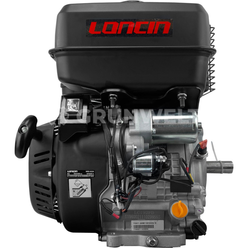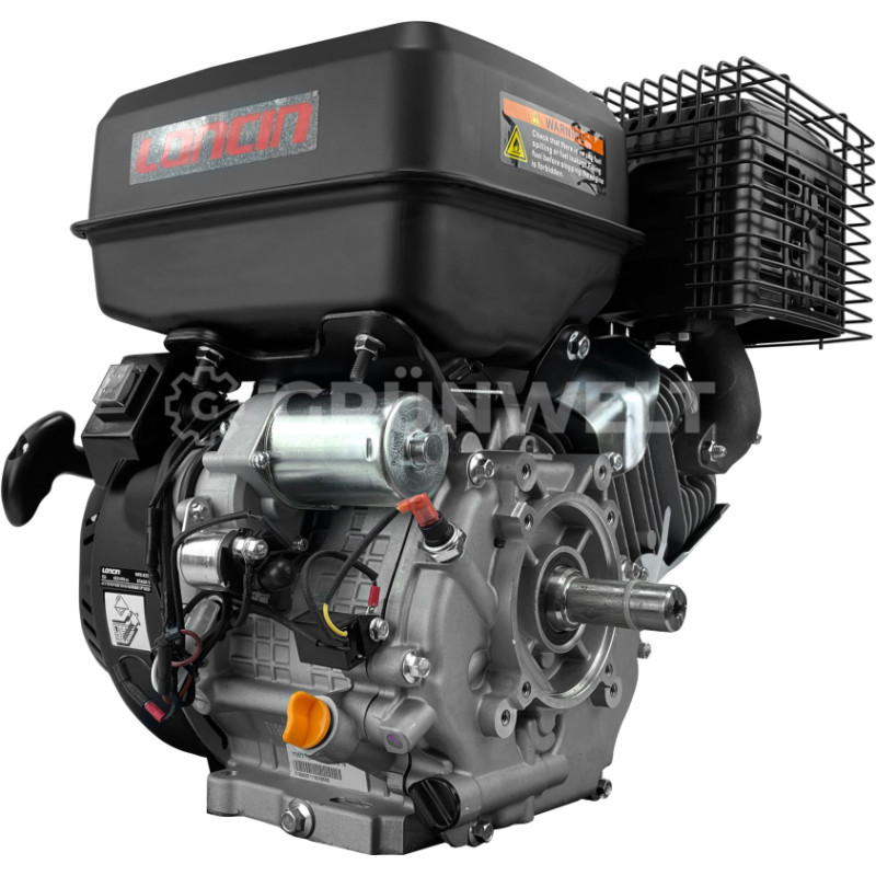 Jūsu iepirkumu grozs ir tukšs! | GTVN: 4260614711174 Tips: Euro 5, 4 taktu, viena cilindra, piespiedu gaisa dzesēšana, OHV Darba tilpums: 459 cm³ Urbums × Gājiens: 92 × 69 mm Maks. jauda: 13,4 kW / 18 ZS / 3600 apgr./min Lietderīgā jauda: 12,4 kW / 3600 apgr./min griezes moments: 31 Nm / 2500 apgr./min Vārpstas diametrs: 25 mm (iegremdēta atslēga) Degvielas tvertnes/dzinēja eļļas tilpums: 6,5 / 1,1 L Palaišanas sistēma: atsitiena starteris / elektrisks Izmēri: 440 × 471 × 450 mm Neto svars: 32 kg Uzticams un videi draudzīgs dzinējs (Euro 5) Cilindrs ar darba tilpumu 459 cm3 ar čugunu un alumīnija bloku ar lielām dzesēšanas ribām garantē uzticamību un ilgu kalpošanas laiku Eļļas sistēma ir aprīkota ar modernu sensoru, kas uzrauga eļļas līmeni karterī Lai atvieglotu apkopi, šim modelim ir divas eļļas iepildīšanas atveres 25 mm diametra vārpsta ar iegremdētu atslēgas izeju Rotācija notiek pretēji pulksteņrādītāja virzienam, ja to novērtē no vārpstas puses |