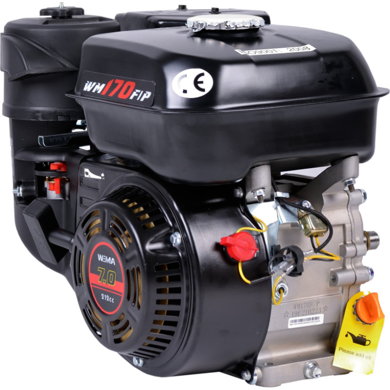 Jūsu iepirkumu grozs ir tukšs! | GTVN: 6971472300896 Tips: 4 taktu, viena cilindra, piespiedu gaisa dzesēšana, OHV Darba tilpums: 212 cm³ Urbums × Gājiens: 70 × 54 mm Maks. jauda: 5,1 kW / 7 ZS / 3600 apgr./min Nominālā jauda: 5 kW / 3600 apgr./min Maks. griezes moments: 12,5 N∙m / 2500 apgr./min Vārpstas diametrs: 20 mm (iegremdēta atslēga) Degvielas tvertnes/dzinēja eļļas tilpums: 3,6 / 0,6 L Minimālais degvielas patēriņš: 395 g/kW∙h Palaišanas sistēma: atsitiena starteris Izmēri: 390 × 330 × 330 mm Neto svars: 16 kg Dzinējs Weima WM170F-S – dzinējam uzticams, moderns un daudzpusīgs! Weima WM170F-S ir četrtaktu benzīna dzinējs ar viena cilindra un gaisa dzesēšanas sistēmu. Šim dzinējam ir 7 ZS, un tas patērē 395 g/kWh degvielas. Pateicoties 3,6 litru tvertnei, tas var pastāvīgi strādāt apmēram 2 stundas bez degvielas uzpildes. |