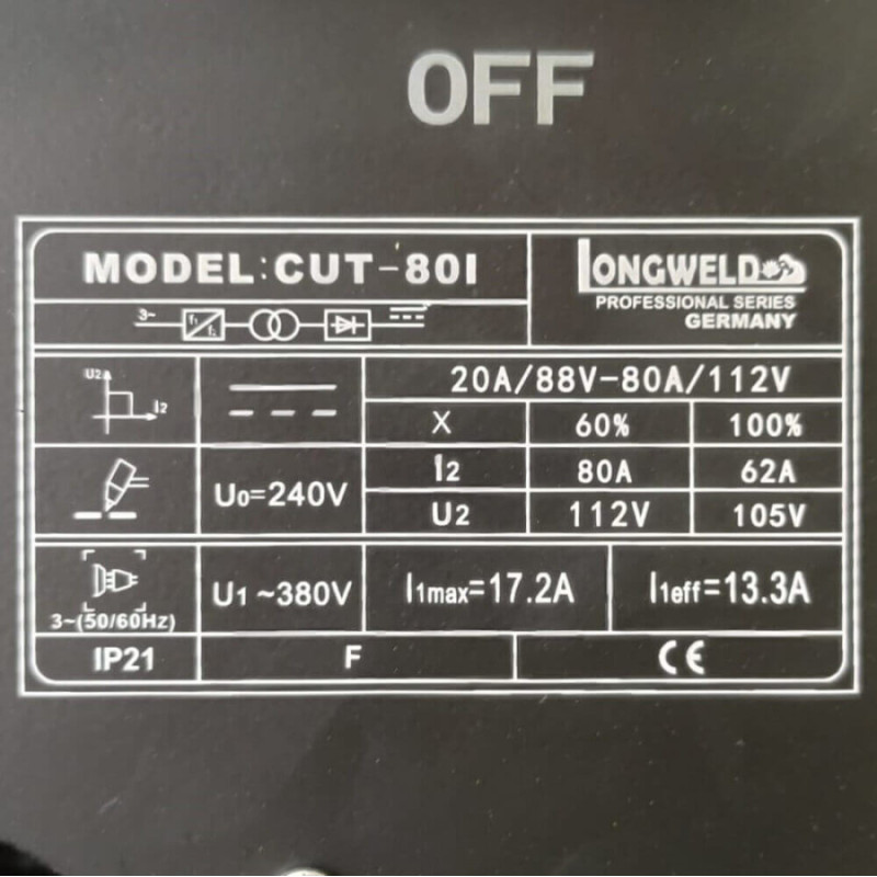 Jūsu iepirkumu grozs ir tukšs! | Rakstāmmašīna - LONGWELD Ieejas jauda - maiņstrāva 380V ± 15% 3 fāzes. 50/60 Hz Ieejas jauda - 11 kWA izejas diapazons: 20 ~ 80A Gāzes padeves tvertne: 0 ~ 10 Loka apgaismojums: HF Spriegums bez slodzes: 270 V Darba cikls - 60% Aizsardzības klase - IP21 Izolācijas klase - F Maksimālais griešanas biezums - 30mm Izmēri - 540 x 255 x 460 mm Svars - 25 kg Aprīkojums - plazmas griešanas uzmava (4m), zemējuma kabelis vai skava, gaisa filtrs, manometrs, griešanas uzgaļi Garantija - 24 mēneši. Šī ir invertora saspiestā gaisa plazmas griešanas sistēma ar kontakta palīgloka aizdedzi. Griešanas sistēma ļauj precīzi, precīzi, ātri un bez deformācijām griezt tēraudu, nerūsējošo tēraudu, cinkotu tēraudu, alumīniju, varu, misu un citus materiālus. Invertora plazmas griešanas sistēma – vislabākajiem darba rezultātiem! |
