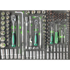 1/4" + 3/8" + 1/2" Dr. Uzgriežņu atslēgu komplekts 122gab. Paplāte
